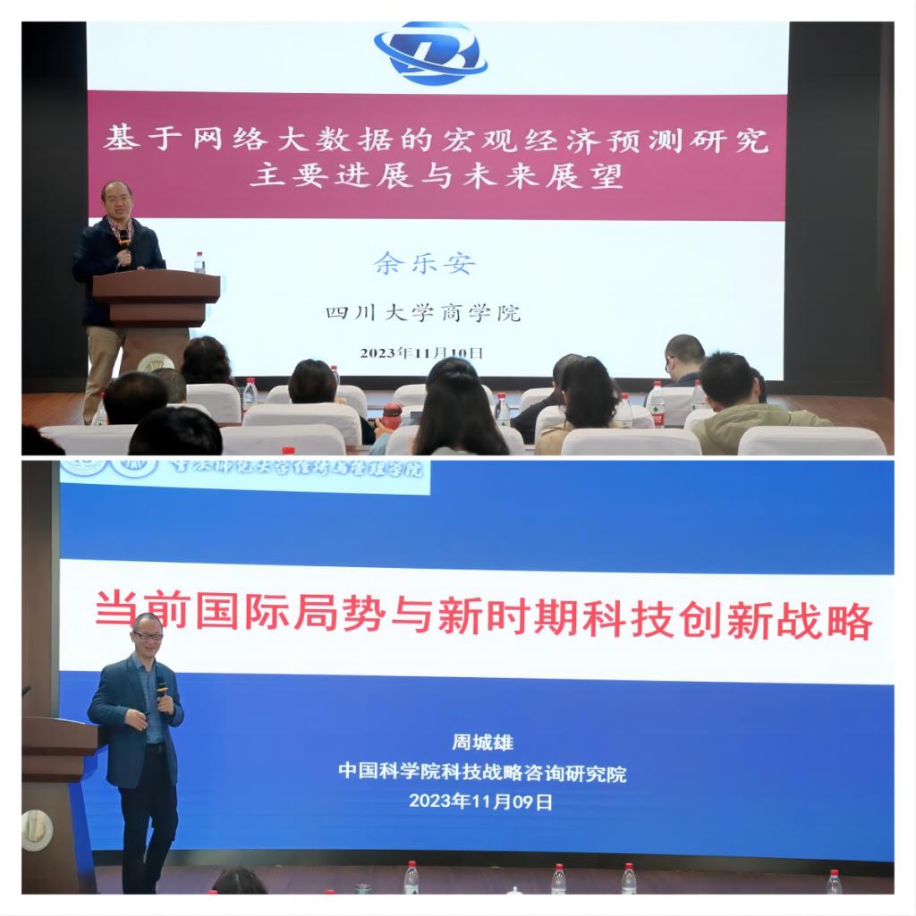 在求是楼517报告厅进行两场“博望经管 名家讲坛”学术讲座。第一场讲座主讲人是四川大学商学院余乐安教授,题为“基于网络大数据的宏观经济预测研究主要进展与未来展望”。余乐安教授基于网络大数据发展和应用现状,详细阐述了大数据受关注的原因、主要特征以及互联网大数据预测宏观经济的背景,分享了大数据预测研究的前沿成果,并回答了现场老师们提出的大数据预测方法选取、农村信用风险识别等问题。