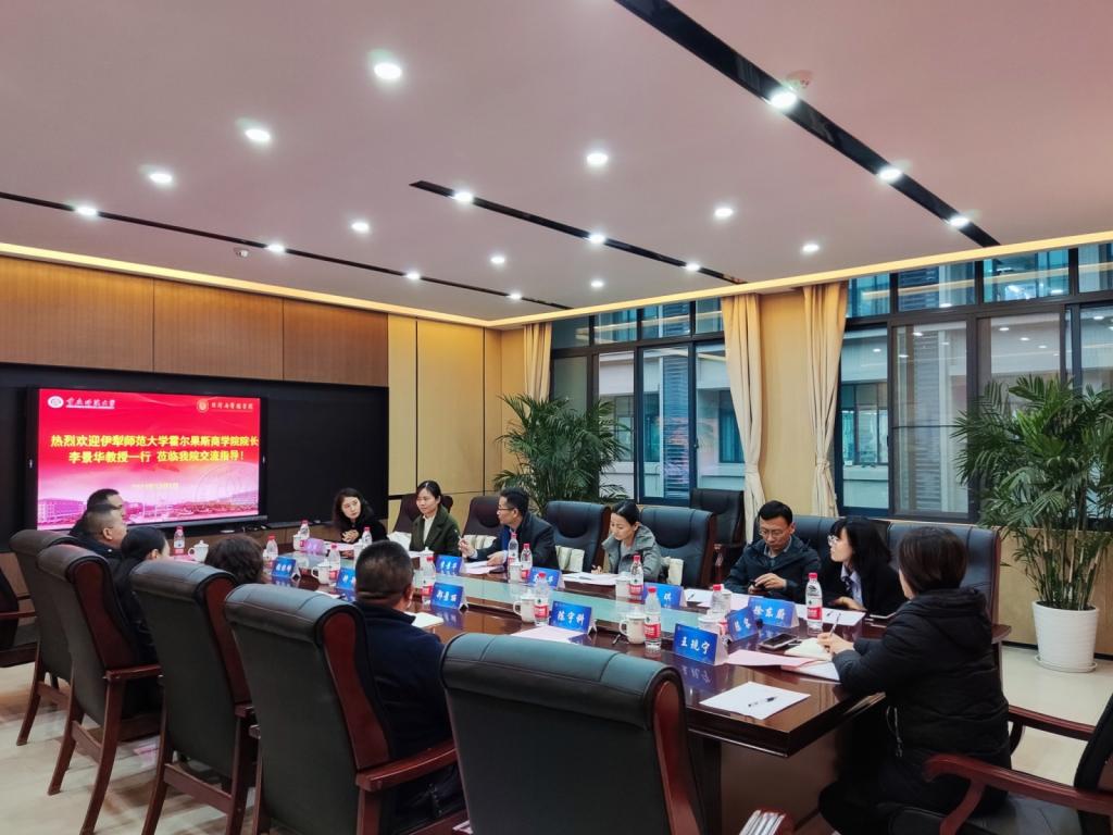 在学科建设和学院发展所取得的成绩给予高度评价,并围绕着霍尔果斯商学院的历史渊源和发展状况、学科布局、办学特色、校企融合等方面作了详细介绍。