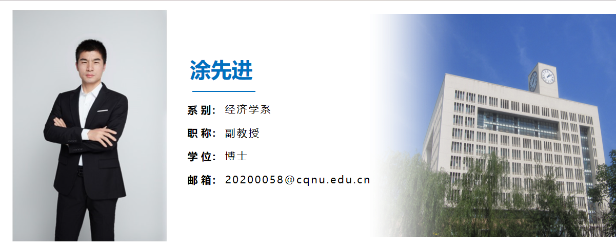 涂先进,男,汉,1982年生,博士学位,副教授,中国消费经济学会会员,主要研究方向为数字经济、居民收入与消费等,主持1项国家社科基金项目、1项重庆社科规划项目、1项重庆市教委人文社科项目,主研其它省部级以上课项,在SSCI、CSSCI等来源期刊发表论文10余篇。邮箱:[email protected]
