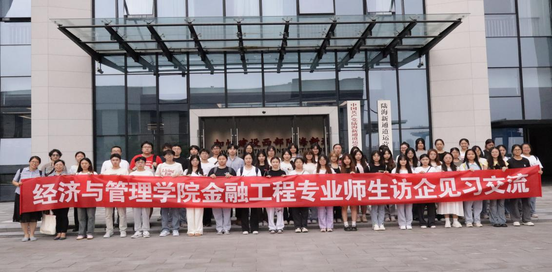 2022级金融工程专业全体学生在向俊和赖苹两位老师的带领下,前往重庆国际物流枢纽园区的陆海新通道运营有限公司进行访企见习交流活动。