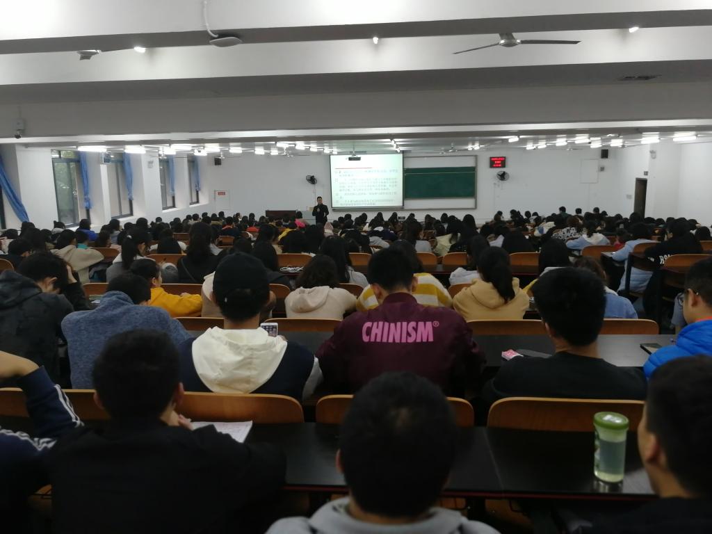 党委副书记任源钢在励志楼2113教室进行“大学生的政治生活与入党教育”专题讲座,柴风梅辅导员组织海角社区