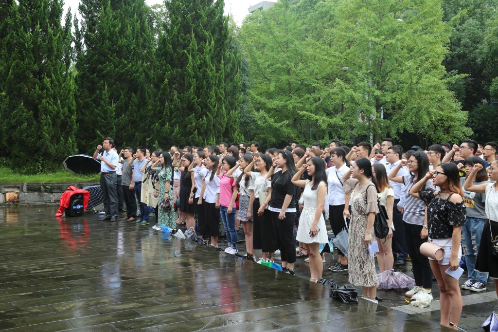 宣誓仪式在蒙蒙细雨中进行,新老党员随着领誓人朱勇宣读誓词:“遵守党的章程,履行党员义务,执行党的决定······”雨中宣誓,庄严肃穆,彰显出党员们为党无限奉献的决心。
