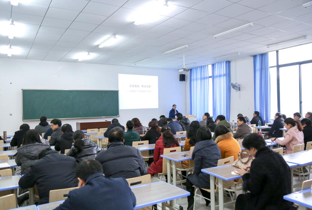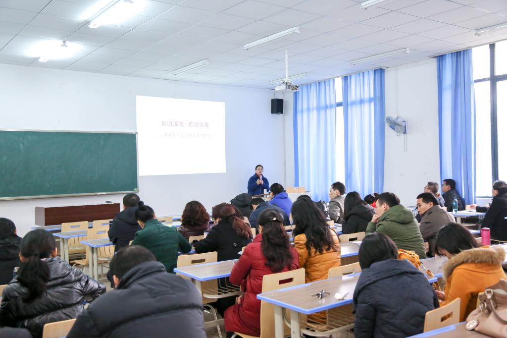 全体党员教师讲授党课《直面挑战,推动发展——谈谈共产党员的责任与担当》。