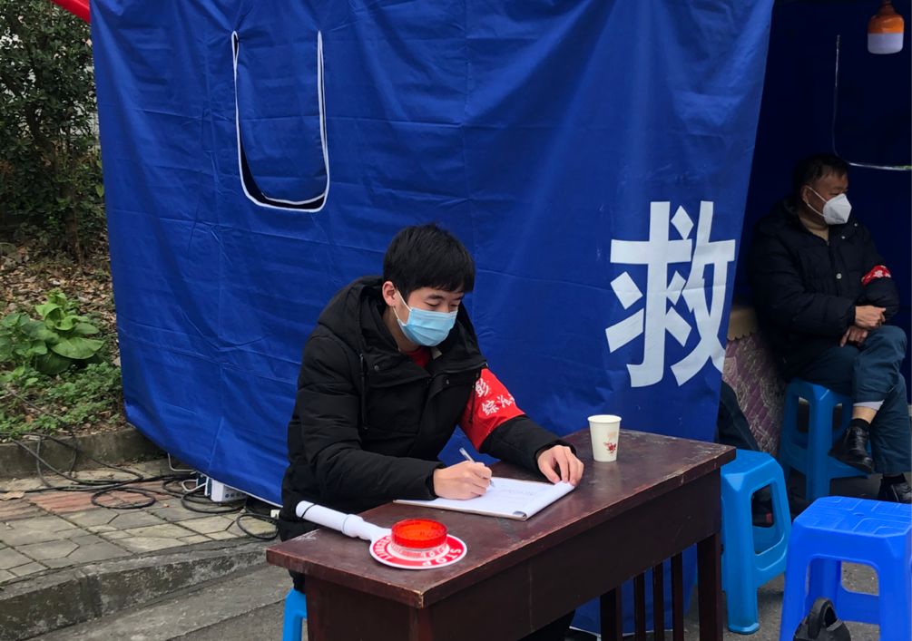 学生二支部党员谈宗焱参加了重庆市忠县汝溪镇老林村新型冠状病毒肺炎抗疫志愿服务工作,担任疫情防控巡查志愿者,量体温,发口罩,运物资,在平凡的志愿服务工作中贡献自己的青春力量。