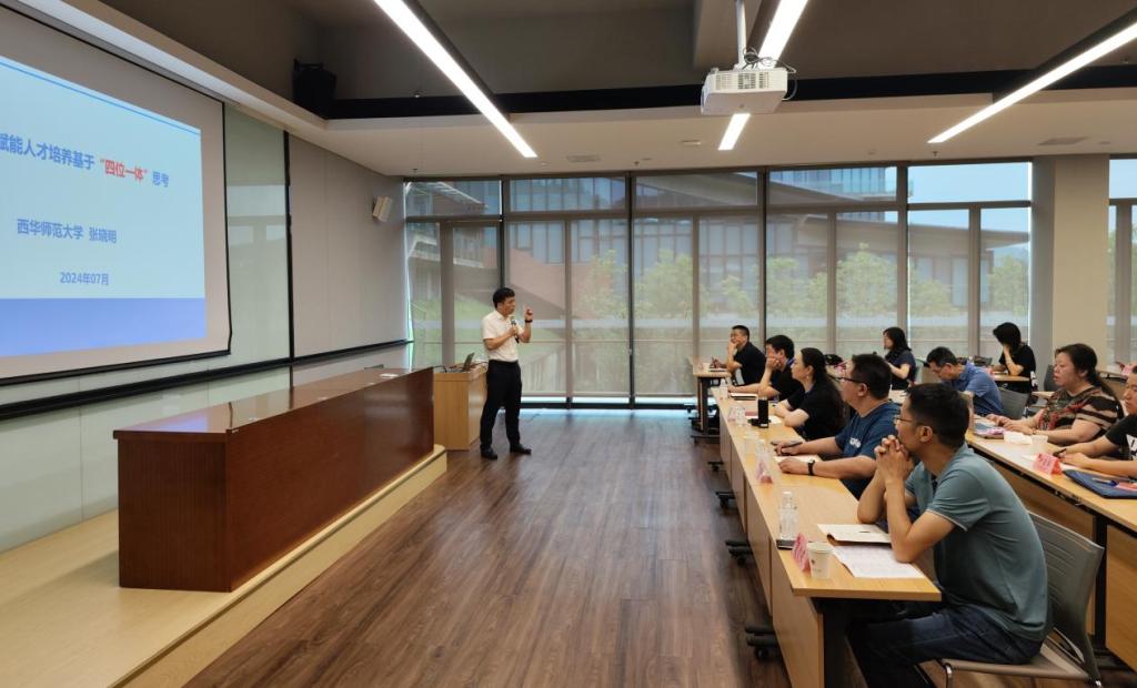 7月15日上午,西华师范大学马克思主义学院院长张晓明为培训班成员带来了《课程思政的改革及案例分析》的专题讲座。张院长结合自己丰富的教学经验和实践案例,深入剖析了课程思政改革的必要性和实施路径,为参训师生提供了宝贵的启示和借鉴。