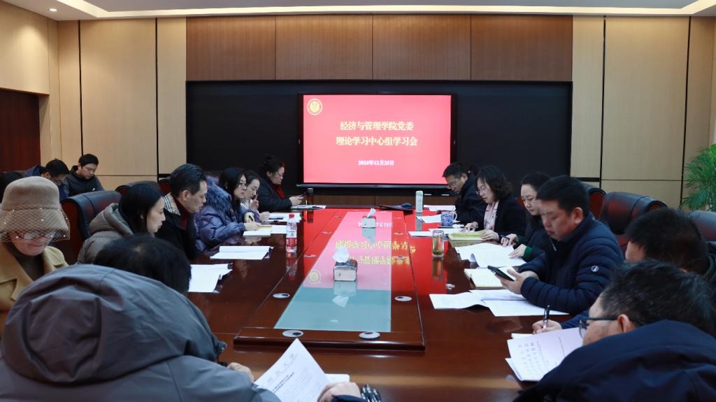12月25日中午,学院党委理论学习中心组在求是楼420会议室开展本月集中学习,学院党委委员、纪委委员、党支部书记参会。会议由党委书记钟敏主持。