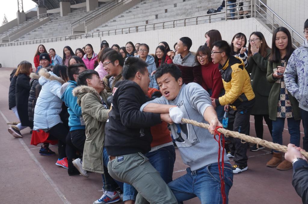 团总支学生会体育部主办的拔河比赛决赛在足球场正式举行,经过前一天的激烈角逐,共有12支队伍进入到本次拔河比赛的淘汰赛以及决赛环节。