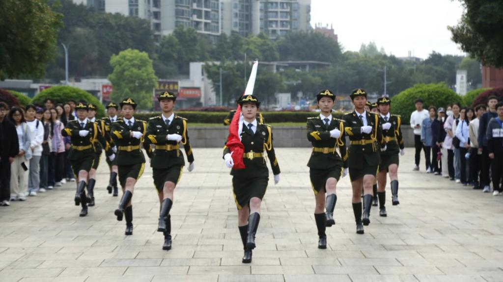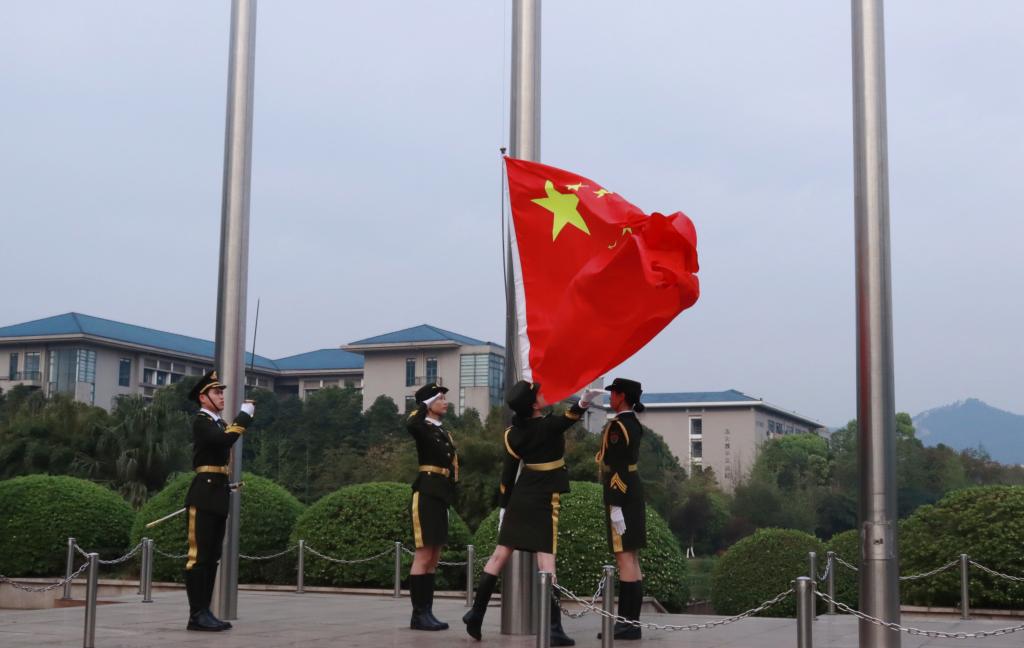 大学城校区隆重举行升旗仪式,学院党政领导、学院全体辅导员老师、学院各学科教师代表、学院团委学生会成员以及全体2023级同学参与本次升国旗仪式,本次仪式由学院党委副书记李青松主持。