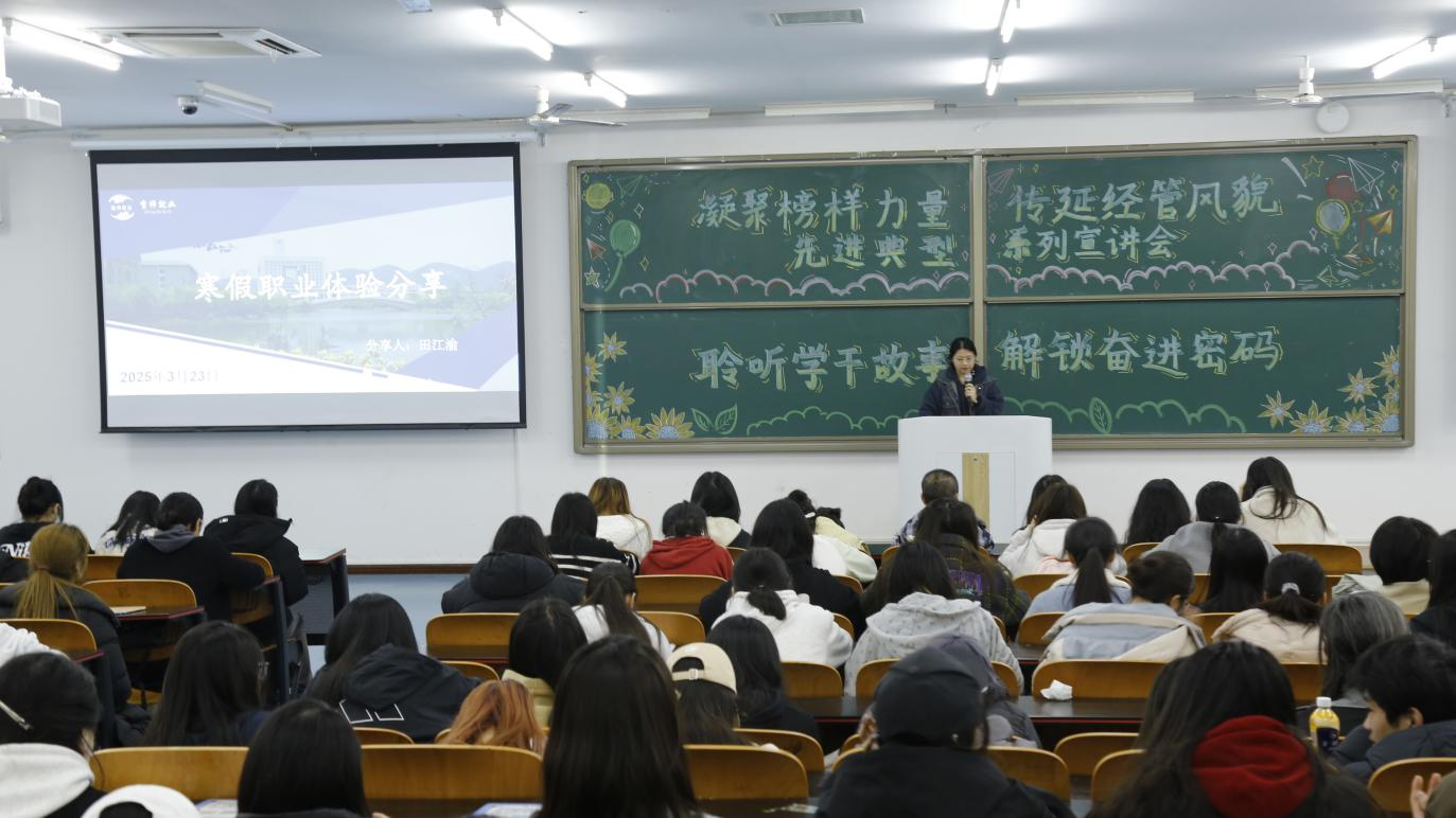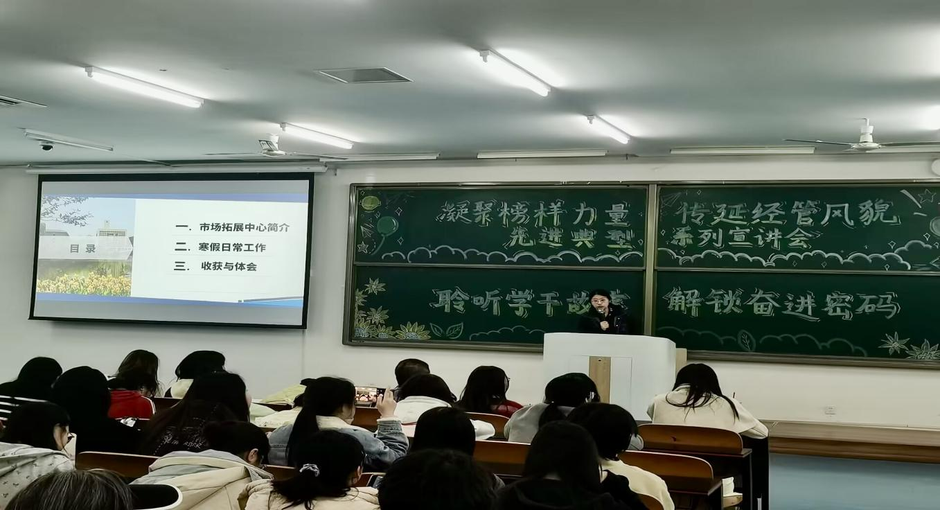 于3月23日晚在特教楼2507开展“凝聚榜样力量,传延经管风貌”先进典型系列宣讲会——寒假职业体验分享会。本次活动由2023级金融工程专业的田江渝同学主讲,海角社区