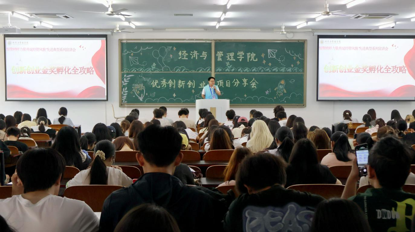 于励志楼T2507举办“凝聚榜样力量,传延经管风貌”先进典型系列宣讲会——创新创业金奖孵化全攻略。本次活动由院团委书记张莉主持,并邀请创新创业学院中国国际大学生创新大赛宣讲团成员周航、陈午阳与同学们分享创新创业经验与感悟,海角社区