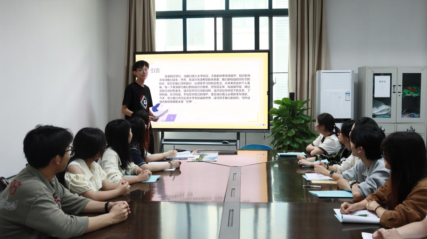 团委学生会于求是楼316开展“大学生权益知多少”权益维护宣讲会。本次宣讲会由团委学生会生活部负责人葛欣恺主讲,第十九届团委学生会全体成员参与。
