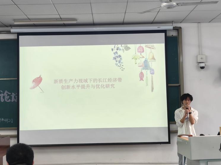 2022级工商管理专业研究生李组奎利用空间经济学的方法和工具,对长江经济带创新水平的空间分布进行实证分析。探究创新水平在长江经济带内的空间集聚、扩散和溢出效应。2022级农业管理专业研究生吴小蓉强调了新质生产力背景下创新的主导作用,需要摆脱传统经济增长方式、生产力发展路径,使得先进生产力进一步具备高科技、高效能、高质量特征。2022级农业管理专业研究生卢柯屹对低空经济进行了较为详细的介绍,强调了低空经济是以航空器为主、低空活动为牵引,多产业融合的新经济形态。