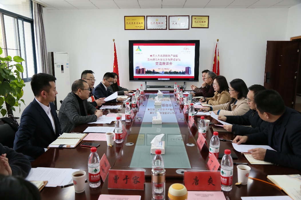 邓君部长就园区的地域分布,平台建设、与高校签订战略协议等基本情况进行了介绍。中心副主任魏建对产业园的规模、职能情况、发展情况等方面作了相应补充,并表示,产业园的发展壮大离不开高校,与高校开展相应合作是产业园促进人才发展的强烈需求,希望在园区和学校的合作之下,促进人才引进工作的顺利进行,解决大学生毕业前实习见习工作,促进大学生就业创业工作的顺利开展。