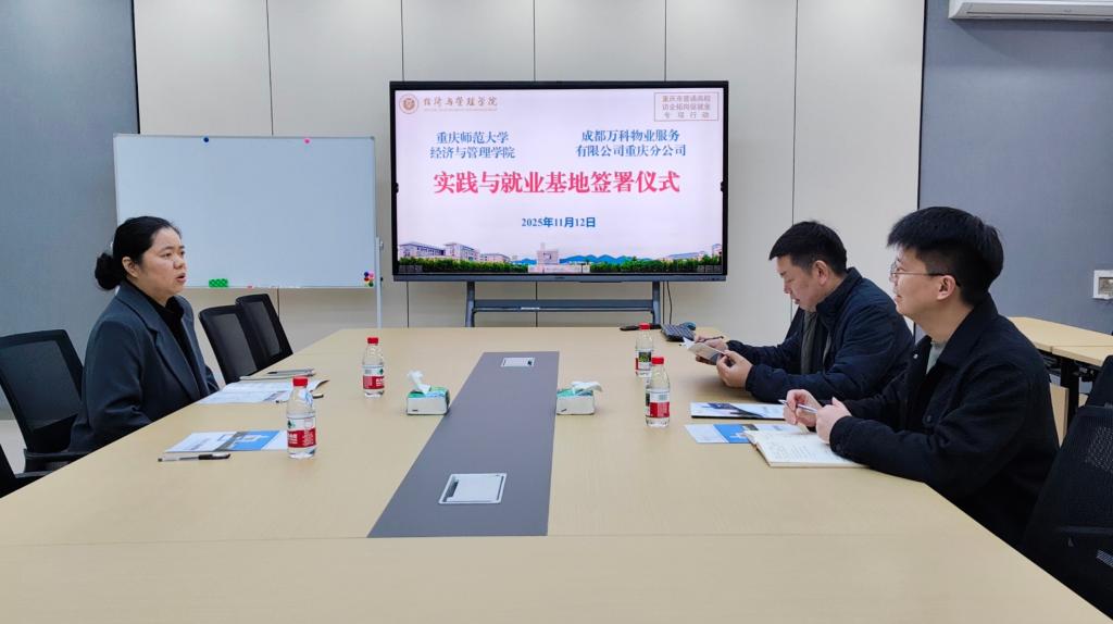 与成都万科物业服务有限公司重庆分公司举行了实践与就业基地签约仪式。学院党委副书记李青松、成都万科物业服务有限公司重庆分公司人事代表王佳佳、辅导员张源出席签署仪式。