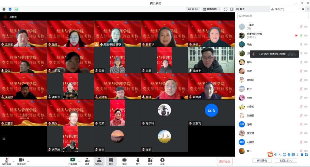 12月29日下午,海角社区 通过线上会议召开2022年度党支部述职评议考核会。会议由院党委书记钟敏主持,党委委员、纪委委员、党支部书记、组织员参加了述职评议考核会。