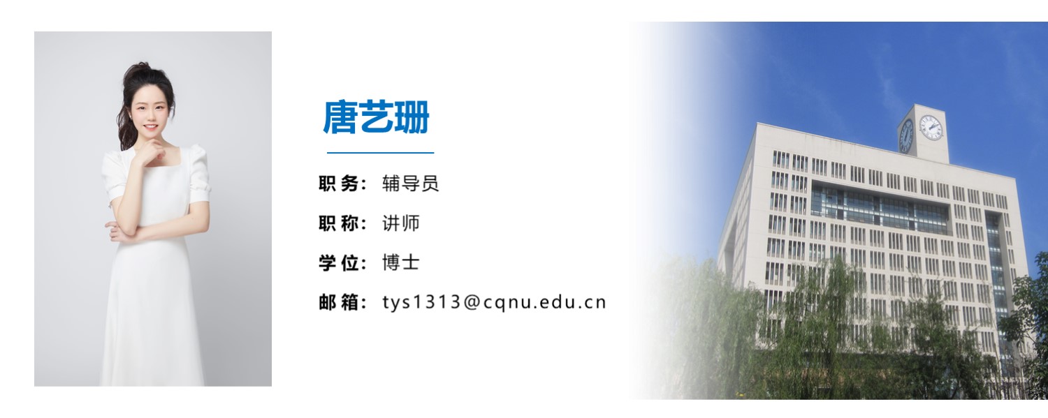 唐艺珊,女,汉族,1994.05,博士,讲师。研究方向:大学生思政教育、艺术品知识产权保护。主讲课程:大学生心理健康教育。