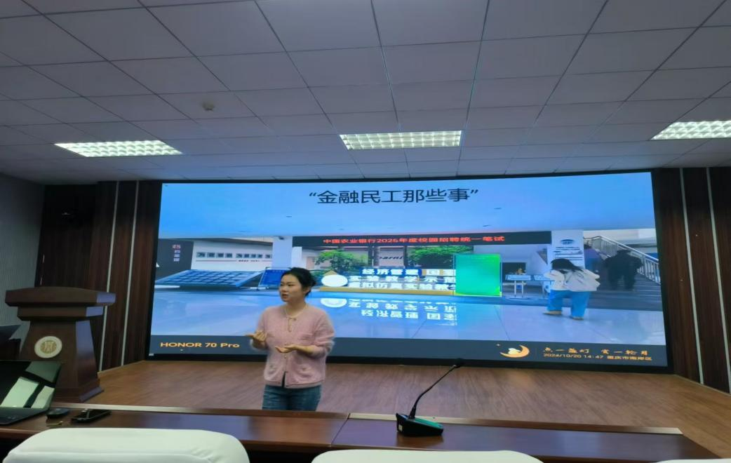 会上,王珏老师强调,同学们应主动适应国家战略需求和服务地方经济社会发展,响应数字重庆和重庆西部金融中心建设需求,积极打造自身建业潜能,明确就业择业定位。