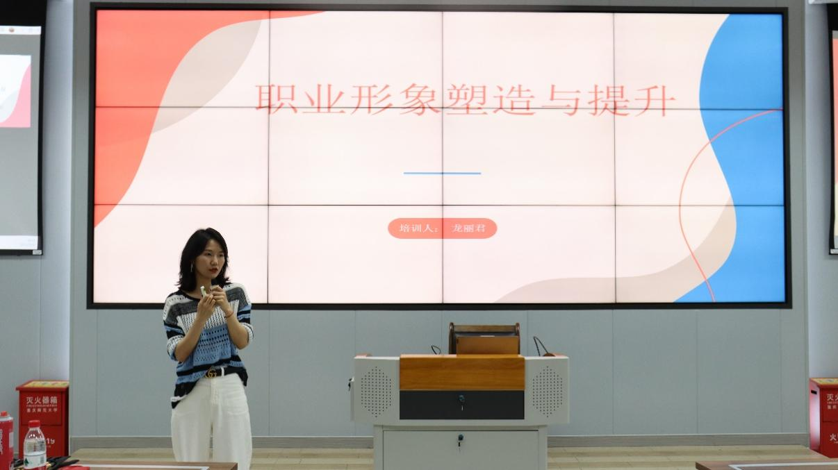 于求是楼131室开展了职业形象塑造与提升培训会。特邀金夫人的龙丽君老师担任主讲人。