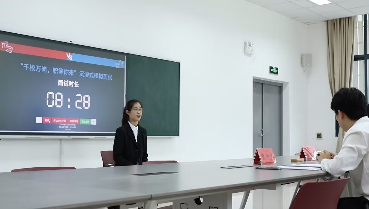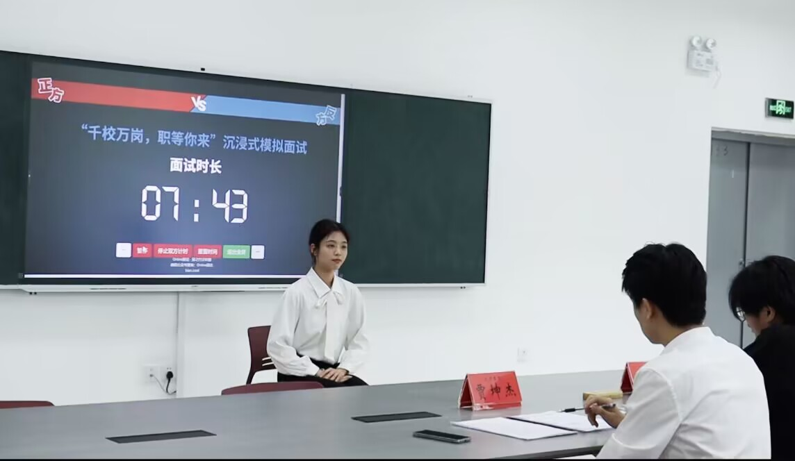 于求是楼133举办“千校万岗,职等你来”沉浸式模拟面试比赛。由主席团成员贾坤杰、文体部负责人龚洲凯两位同学模拟公司人力,并担任评委。