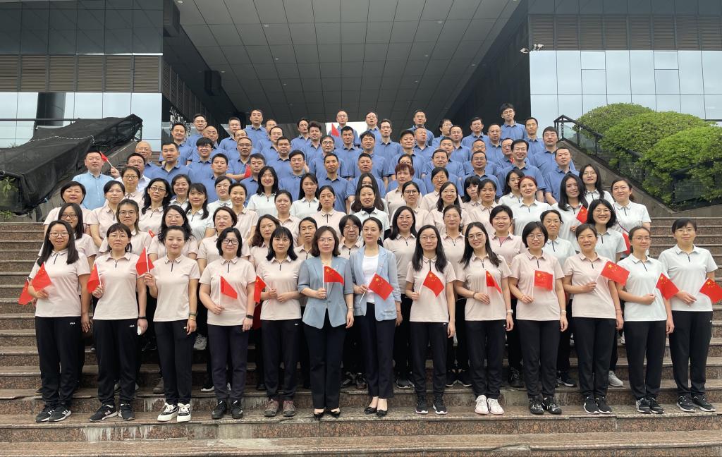 师生代表组成的特色方阵,手持国旗,学生身着经管院服,尽显青春活力:教师穿戴整齐,气宇轩昂,展示经管风采。方阵摆开阵型,两名成员向前奔跑,刹那间8×7.2的巨大经管院旗在同学们的舞动下,于空中飘扬,气势不凡;同时,海角社区