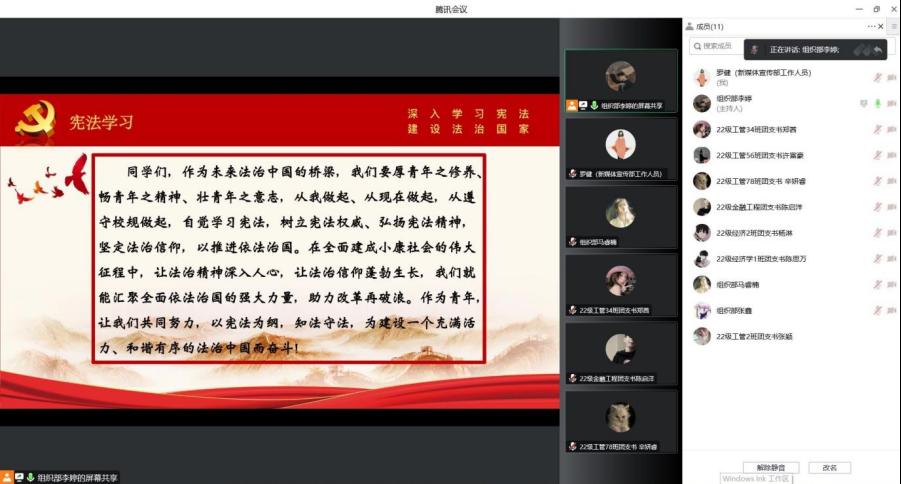 团委学生会组织部主要负责人李婷领学,22级团支书以及组织部全体成员参会。