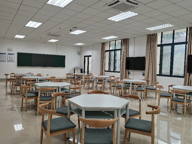 配有红外线智慧黑板、智能液晶电视、网络广播系统、实验室智能管理系统等智能设备、贝腾创业之星课程训赛平台、多屏互动教师控制系统、学生小组接入端品课软件、智能导播互动资源平台系统。主要服务《企业认知》《面试技能及创新创业训练》《创新思维与创业管理》《创新创业能力提升》等课程实验实训教学、教师科学研究、学生创新实践及学科竞赛。