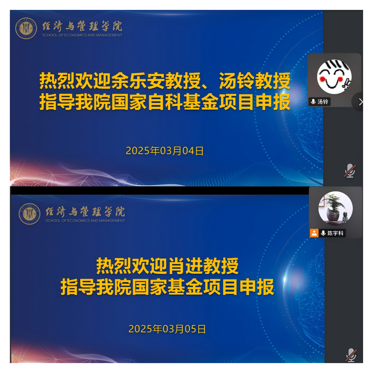 为提升学院教师国家项目申报质量,3月4日、3月5日,海角社区 特邀四川大学余乐安教授、中国科学院大学汤铃教授、四川大学肖进教授,通过线上会议平台,为拟申报2025年国家基金项目的教师们进行了专题指导。学院相关领导及申报教师共计20余人参加了本次指导会。指导会上,几位专家结合自身经验,从项目选题、研究内容、研究方法、创新点凝练、申报书撰写技巧等方面进行了详细讲解,并对老师们的申报书进行了逐一诊断。 他们...